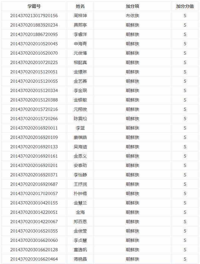 2017年市内三区和崂山区中考加分考生公示(报考普通高中考生)