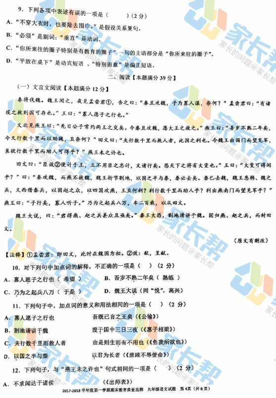 2017-2018学年青岛市南九年级上学期期末语文试题(4)