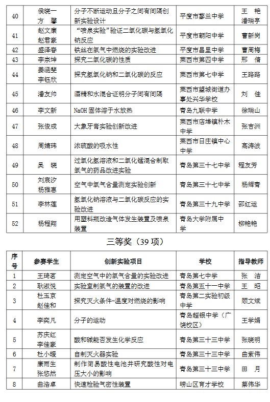 青岛市第七届初中学生创新实验展评化学获奖名单(5)