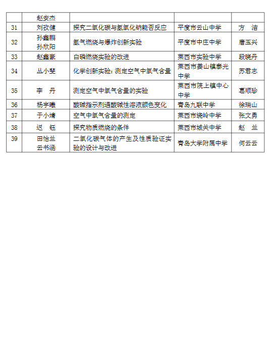 青岛市第七届初中学生创新实验展评化学获奖名单(7)