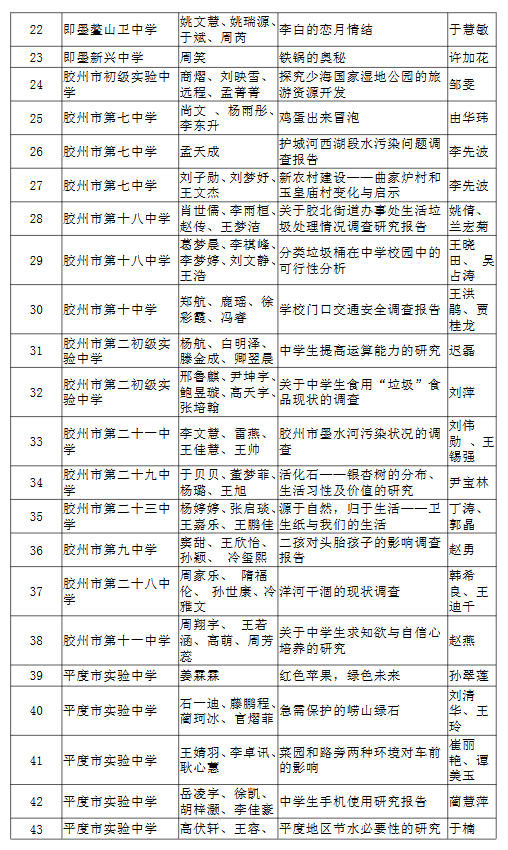 2017年青岛市初中综合实践研究性学习成果评选获奖名单(10)
