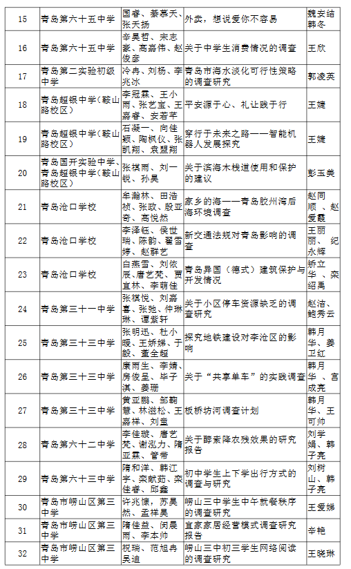 2017年青岛市初中综合实践研究性学习成果评选获奖名单(2)