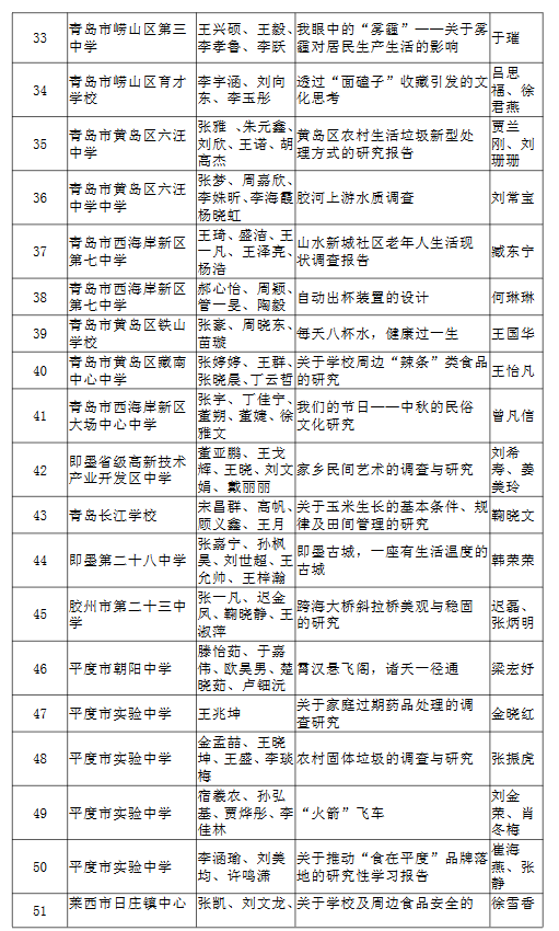 2017年青岛市初中综合实践研究性学习成果评选获奖名单(3)