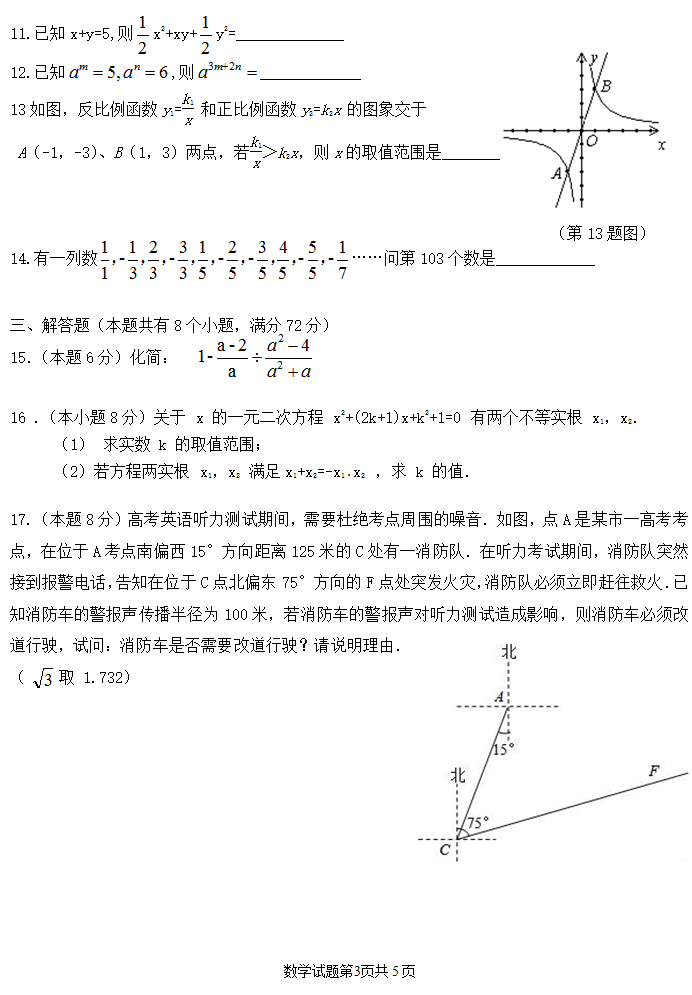 2017年青岛实验高中自主招生考试数学试题(3)