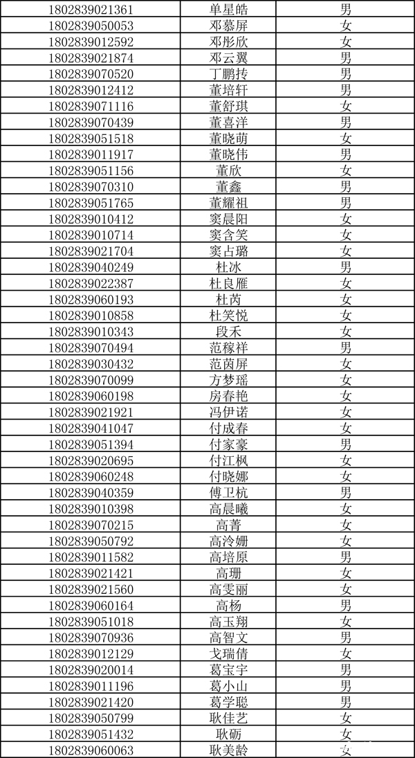 2018年平度经济开发区高级中学新生录取名单公示(2)